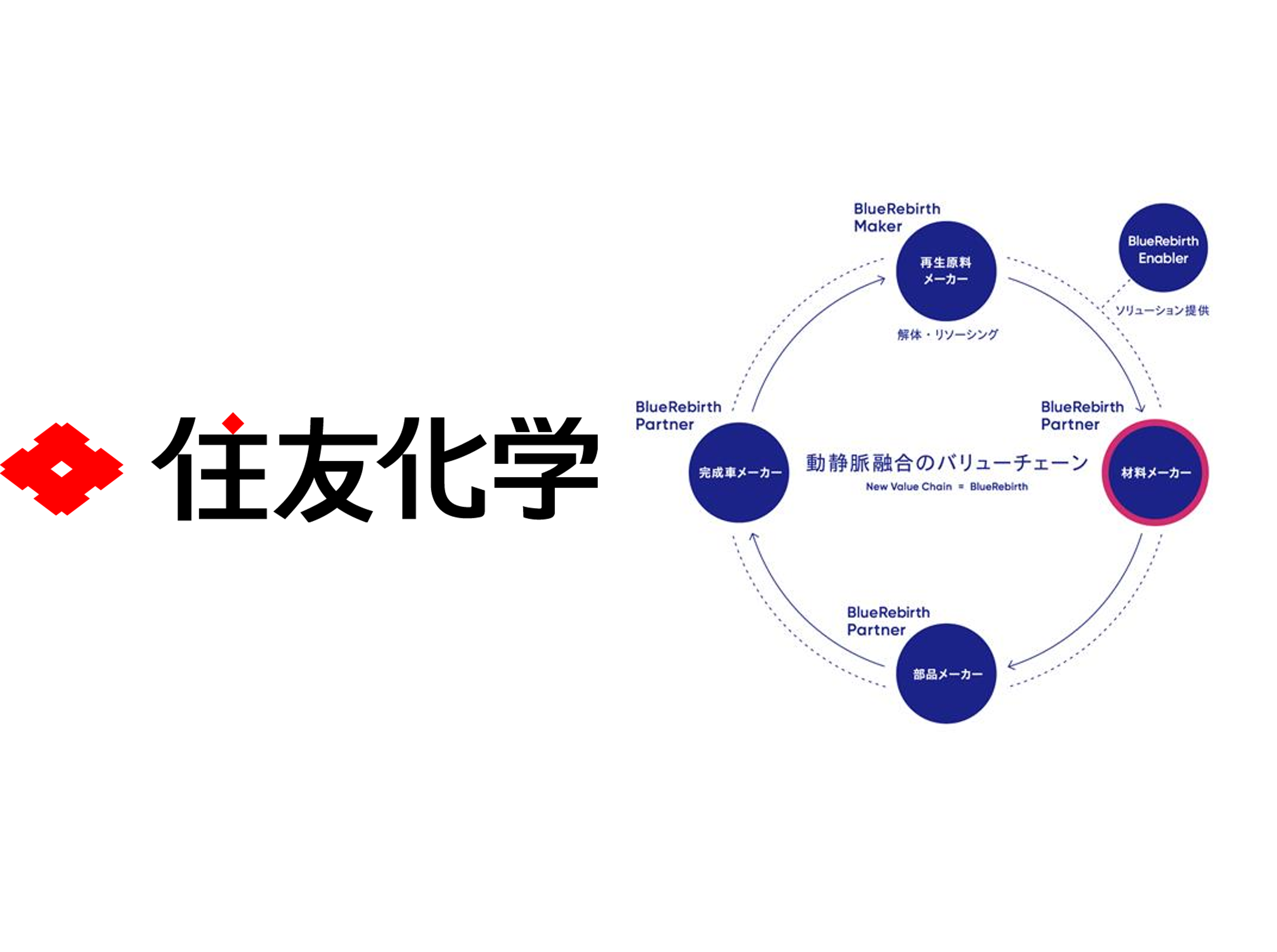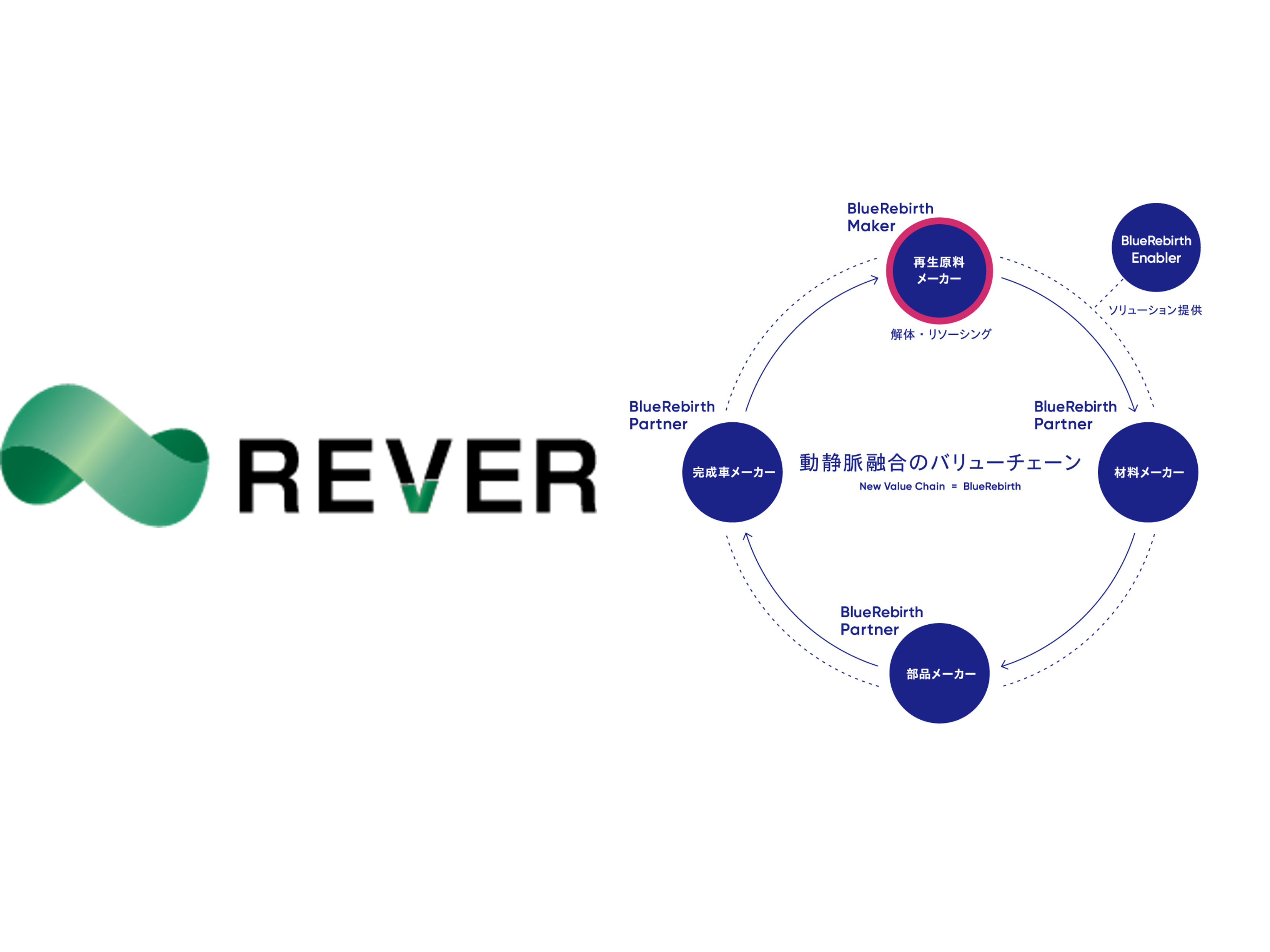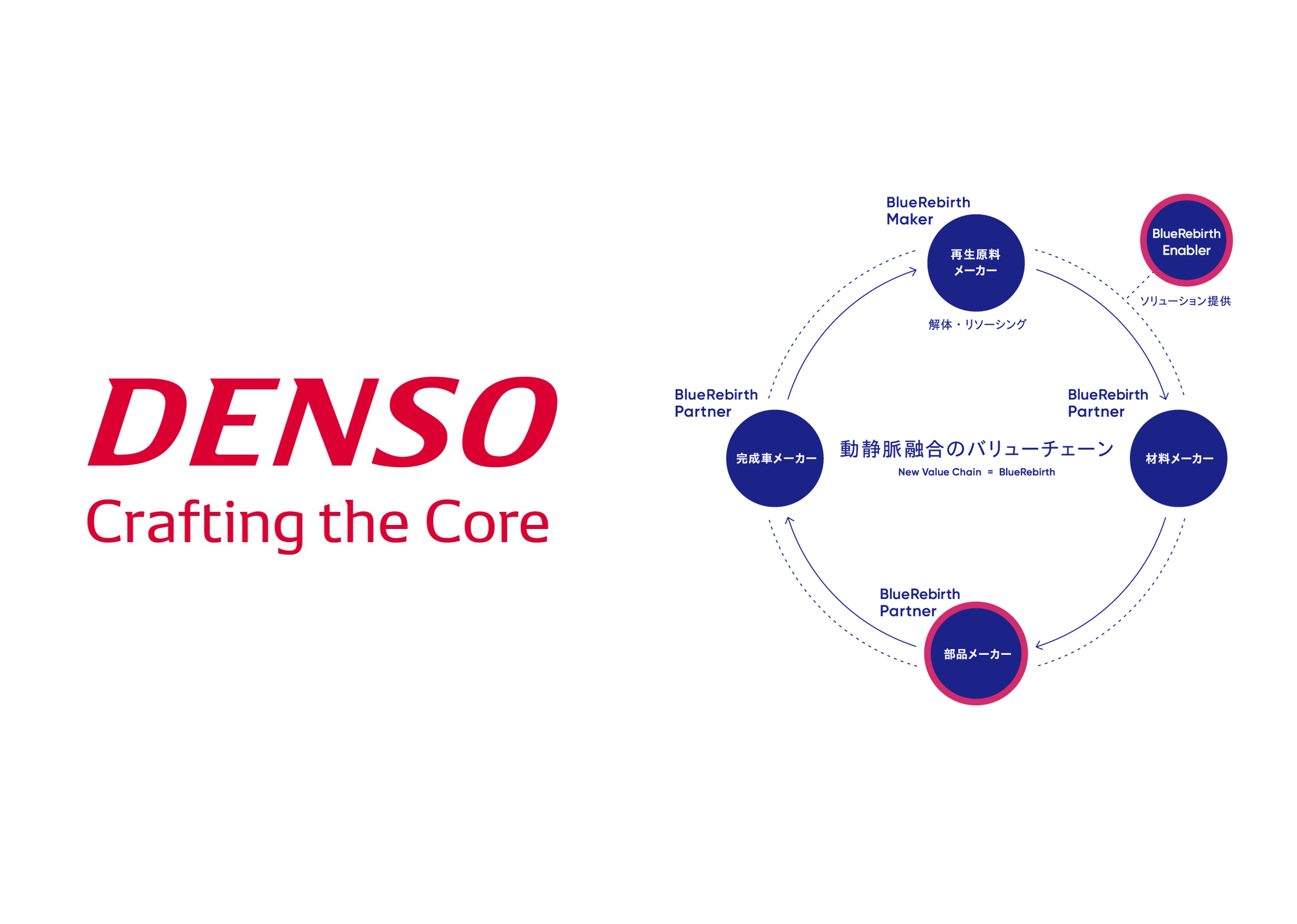欧州ELV規則案によって車由来のリサイクル材の使用が義務化が検討されるなか、当社は、自動車部品の総合サプライヤーとして、ELV(使用済み自動車)の回収と再生材としての活用は自社だけでなく日本の自動車産業の持続性に関わる課題と考えています。こうした認識をもとに、当社はBlueRebirthにおいて「自動精緻解体システム」の開発をめざしています。そのねらいは、世の中にある2,500以上の車種一台一台を精緻に分解し、「質」も「量」も動脈産業と同等の高純度な再生材を生み出すことです。そのため当社は解体事業者の解体工場で人が行う動作をAIで解析してきました。但し、この手法では限界があることから、今後はこれらデータに加えて、部品や自動車メーカーがもつ設計データを活用し、新しい車種でも予見に基づいて精緻に解体できるノウハウを獲得していく計画です。同時に、多様な業種の集まりであるBlueRebirthの強みを活かして、自動車の精緻解体を起点とした設計・製造から再生までのルールや規定を策定し、経済合理性をもった動静脈一体のバリューチェーンの構築に貢献していきたいと考えています。